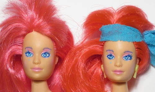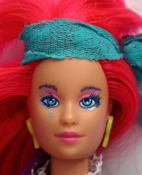 12 1/2" doll: Caucasian doll with long red-pink hair. She