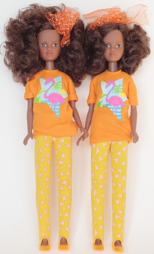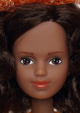 11" doll: African-American with curly brown hair. These are the least recognizable