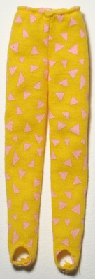 stirrup pants: Soft cotton, elasticized waist, fabric painted on pink triangles, stirrups. |