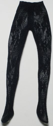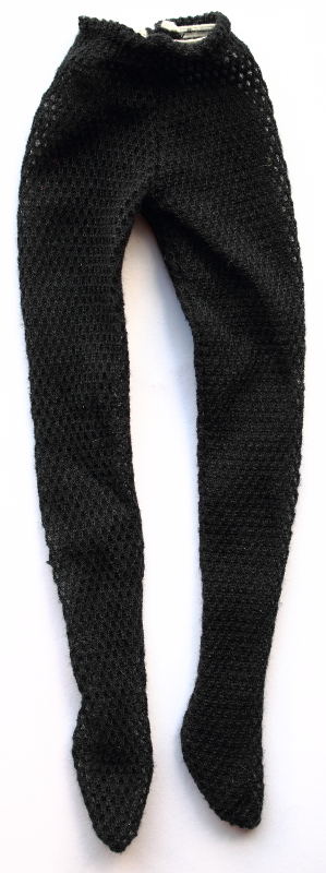 stage fashion (tights); Black closed-weave fishnet tights.