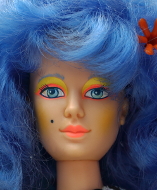 12 1/2" doll; Caucasian doll with long curly dark blue hair.