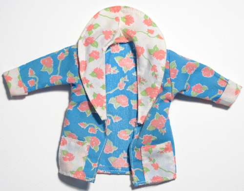 and wide jacket with wide lapels, cuffs and pockets, rose design.